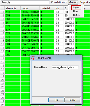 7. The next step is to get E, Nu from the material. Activate the material column, and then select E and Nu from the data names.