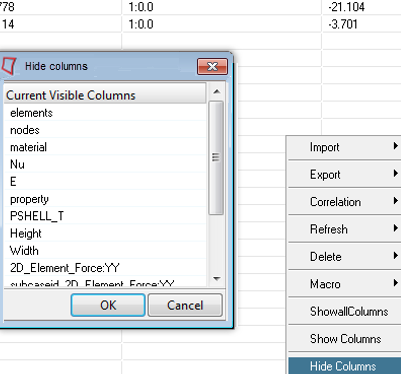 10. By default, the matrix only displays the results for each subcase in separate column. Retrieve additional information by right-clicking and selecting Show all columns from the context menu.