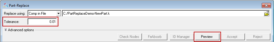Expand Advanced options to select advanced part replacement options.