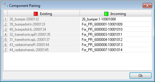 Pairing dialog, modify the component pairing and click