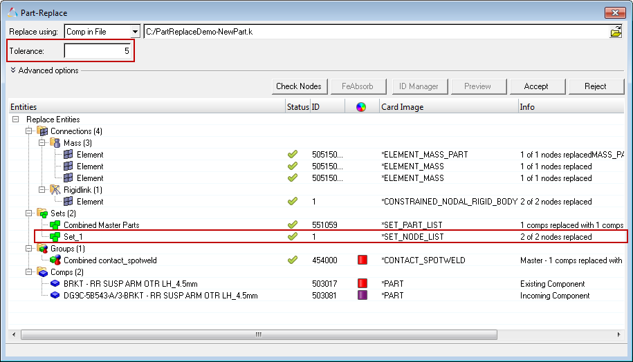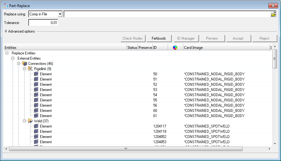 Option Description Copy existing component card image to incoming component copy the element type card from the source to the component that is being replaced. Merge Nodes on incoming component boundary Box Approach for Node Sets