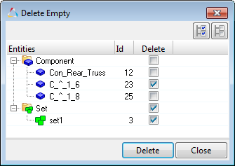 | Empty | Preview and delete empty collectors. This operation can be performed on several entity types at the same time. To append entity types to the selection, left-click while pressing Control. Only