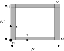 The following images indicate the location of the value fields in the SECDATA card, such as W1, W2, t1 and t2.