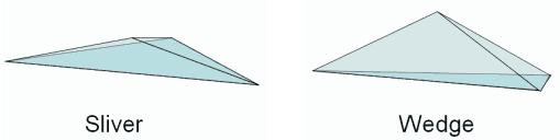 One function is to remove sliver elements – tetrahedral elements which are so flattened that all of their nodes are very close to planar. If the element's Aspect Ratio (the ratio of its maximum length to its minimum length) is high, the element is a sliver; otherwise, it is a wedge.