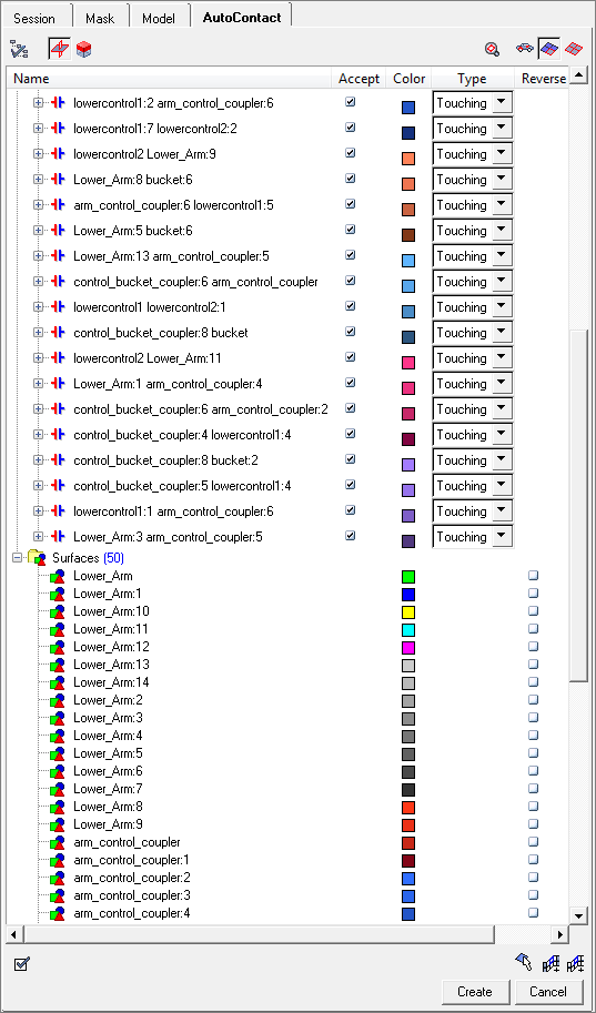 Contact pairs are created for all items marked as Accepted. Clicking Cancel will close the Auto Contact Browser without creating any contacts.This creates a BCTABLE card with master-slave entities that use the contact types displayed in the Auto Contact Browser.