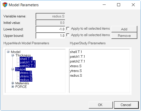 Variables step. Each model parameter is associated with an input variable Figure 1. HyperMeshModel Parameter Dialog