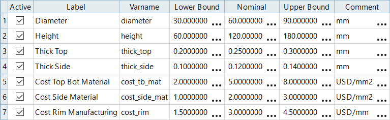 Specify a lower, nominal, and upper bound.