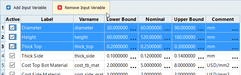 Tip: Select multiple input variables to remove by holding Ctrl while left-clicking.