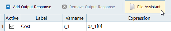 Automatically create and define output responses using the File Assistant's guided set of dialogs to extract data from the output files generated during the evaluation.