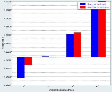 Compare differences between input variable and output response run and reference data in a bar chart format from the Delta Plot post processing tab.