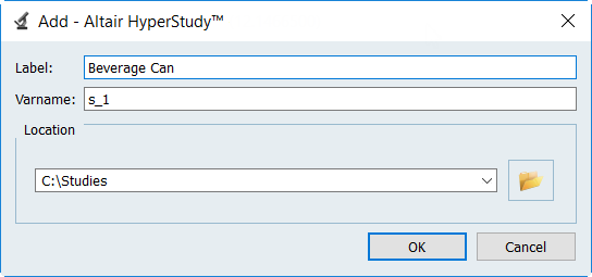 Create Studies Create a new study. From the ribbon, Study tools, click New. The Add dialog opens. In the Label field, enter a name for the study. In the Location area, navigate to your working directory. Click OK. Figure 1.