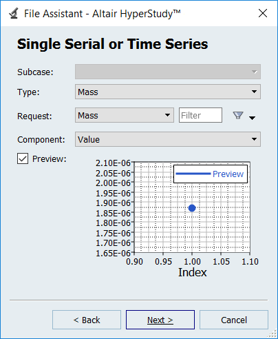 The Mass output response is displayed in the work area.