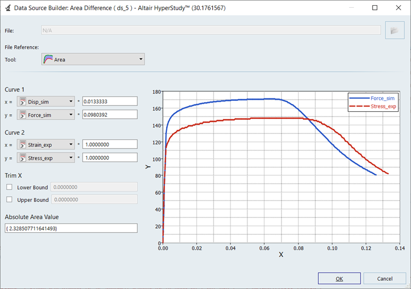 The objective of this tutorial is to find the Radioss material parameter values so that the stress-strain curve of the tensile test simulation matches the tensile test experimental curve.
