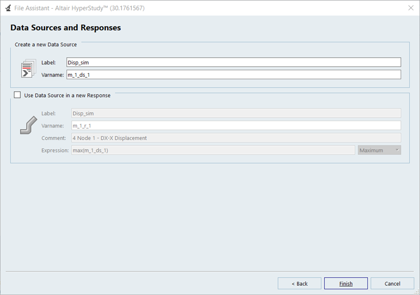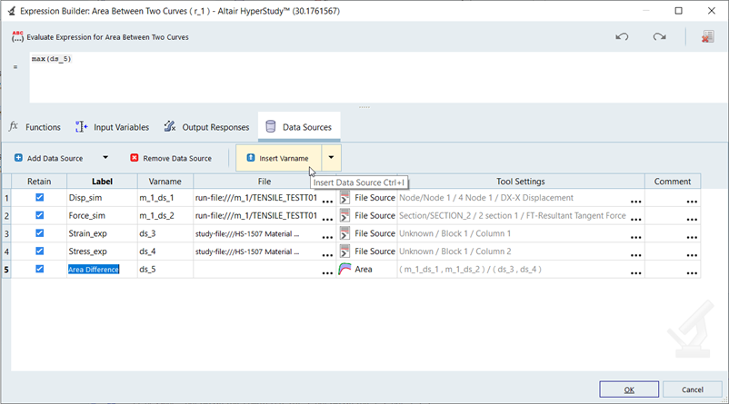 In this step, you will create the data sources to be used in the Area function and evaluate output responses.
