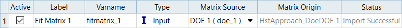 - In the Matrix Source column, select DOE 1 (doe_1).