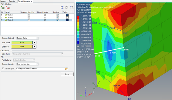 Use this tool to extract contour data along a path defined on solid