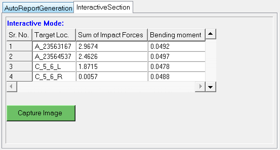 Based on the selected impactor type, a table is inserted in the Interactive Section