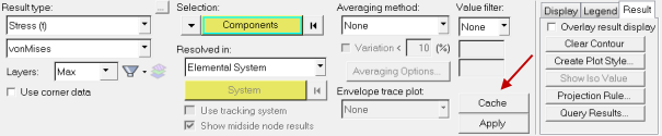 - Caching is a run-time feature only; therefore cached results cannot be saved in a session file or an H3D file. Only results that are contoured when an H3D is exported, or a session is saved, are restored.