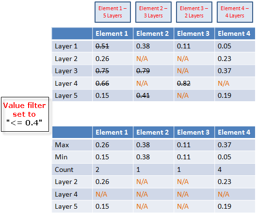Only the layers which are less than or equal to 0.4 (the Value filter setting) are