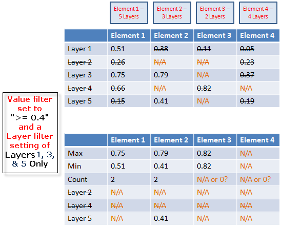 All layers are included in the count and other calculations (Max, Min,