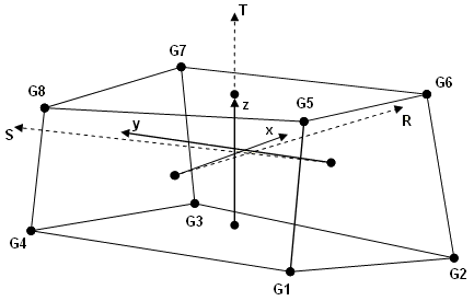 - S vector joins the centroids of faces G1-G2-G6-G5 and G4-G3-G7-G8.