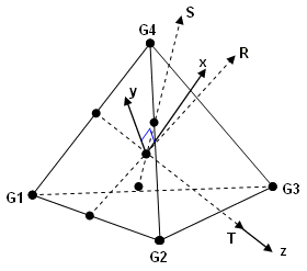 - The element coordinate system is derived from the three vectors, R, S, and T, which