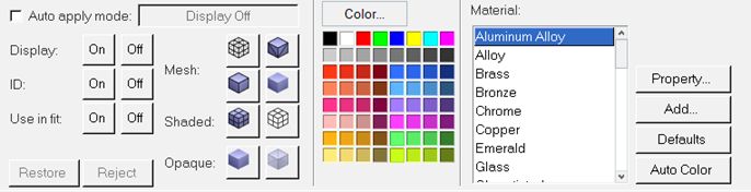 The Entity Attributes panel allows you to change the display attributes of model entities.