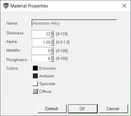 Material attributes can be assigned to any entity in a model. You can change the material of any entity by selecting a material from the list. The material can then be customized using the Material Properties dialog.