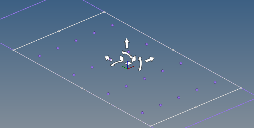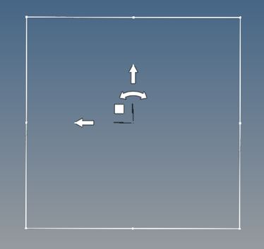 The Two Directional manipulator is a rectangular planar area encompassing the component selected (or its projection on the plane) with corner and mid-side handles, arrows, and a square handle.