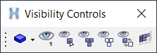 The Visibility controls toolbar provides you quick access to the following visibility controls: Entity Type, Isolate, Hide, Display All, Display None, Display Reverse, and Find Attached.