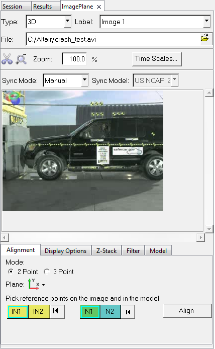 Tip: Right-click on an image plane within the Results Browser and select Edit in order to display the Image Plane tab again for editing purposes.Note: The graphical manipulator is linked to the Image Plane tab, therefore the display of the graphical manipulator is turned off whenever the tab is closed. See "Show Manipulator" for additional details regarding turning on the display of the graphical manipulator.
