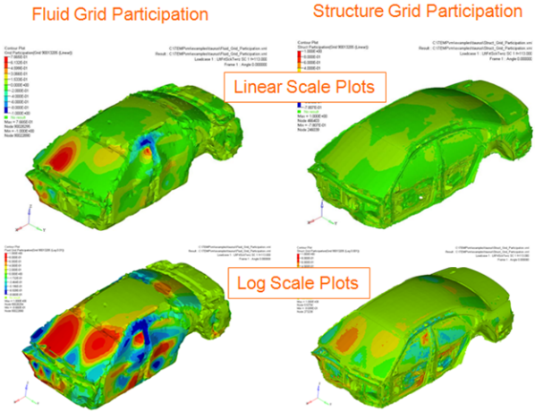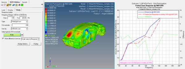 In HyperView, the NVH Grid Participation utility allows you to create and view contour plots by selecting various scales, grids, and grid IDs for the specified Structure or Fluid grid participation.