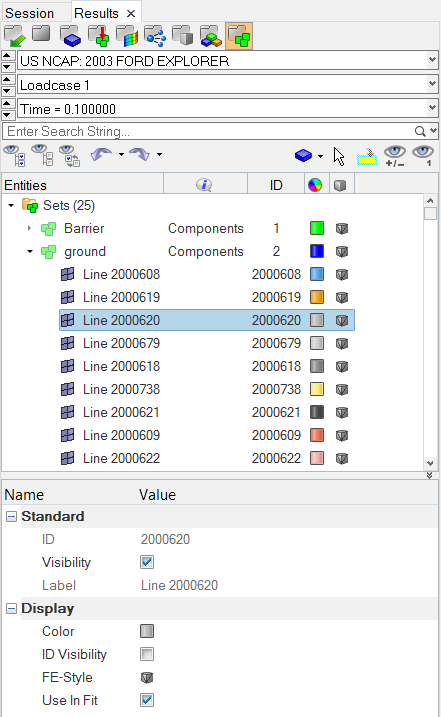 The Entity Editor section of the Results Browser allows you to view and edit various set or component conditions/properties. Click on a set or component in the upper portion of the browser to automatically display the properties assigned to that set or component in the Entity Editor.