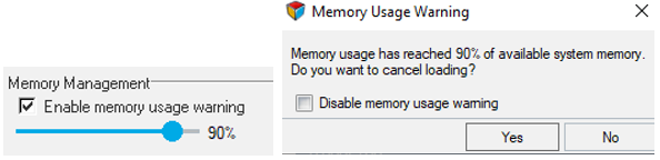 - Memory monitoring to warn if usage reaches a certain threshold and cancel any ongoing loading.