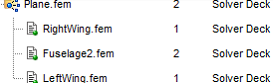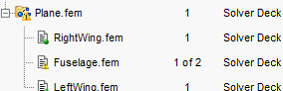 For example, suppose a Solver Deck Plane.fem references three include files: RightWing.fem, Fuselage.fem, and LeftWing.fem. Plane.fem version 1 refers to version 1 of the three include files.