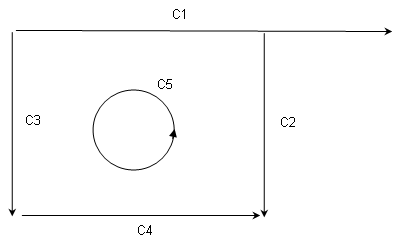 Figure 3. The curves C1, C2, C3, C4 are straight lines, for which the segments corresponding to parametric range 0 … 1 are shown. The curve C5 is a circle with angular parametric range 0… 2π.