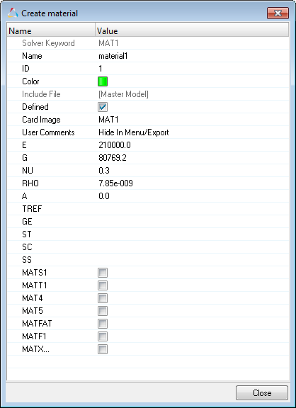 *setvalue materials id=1 STATUS=1 4=7.85e-009;