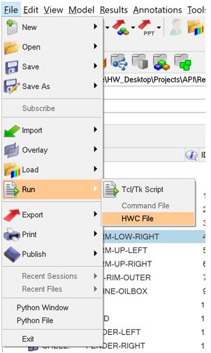 Figure 1. Run HWC Files from the File Menu