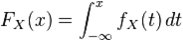 Returns the cumulative probability that a real-valued random variable x with a given continuous distribution will be found to have a value less than or equal to x.