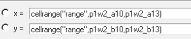=cellrange("range", B3,B8,C12,D14)=cellrange("list", B3,B8,C14)Draw a curve in HyperGraph based on the cell values A10-A13, B10-B13 in the table in window 2: