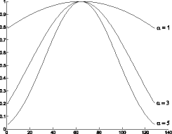 Given c1, a curve is created which is the original curve windowed using the Kaiser-Bessel window function, with alpha = 3. |