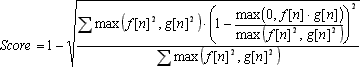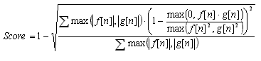 - Peak score = max(0,Mf*Mg) / max(Mf²,Mg²)