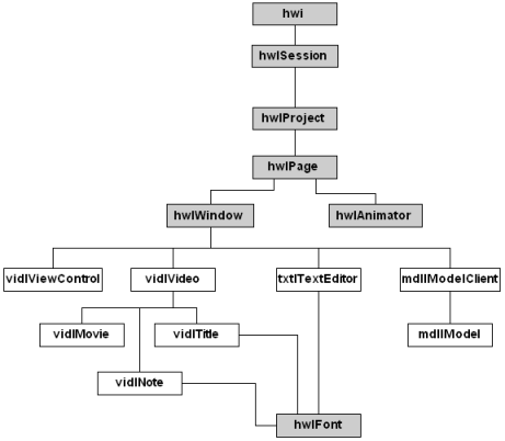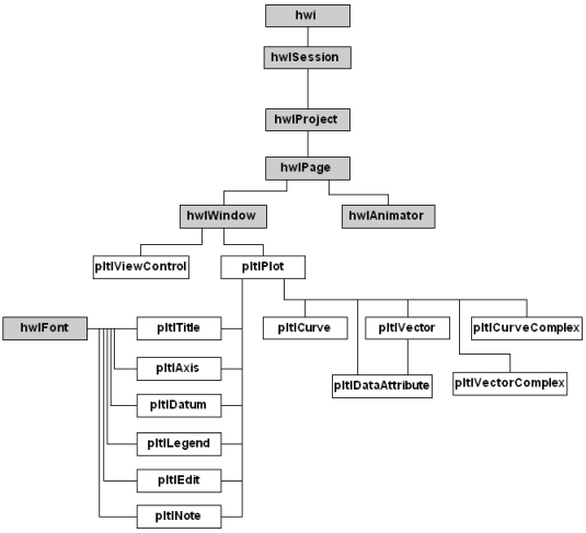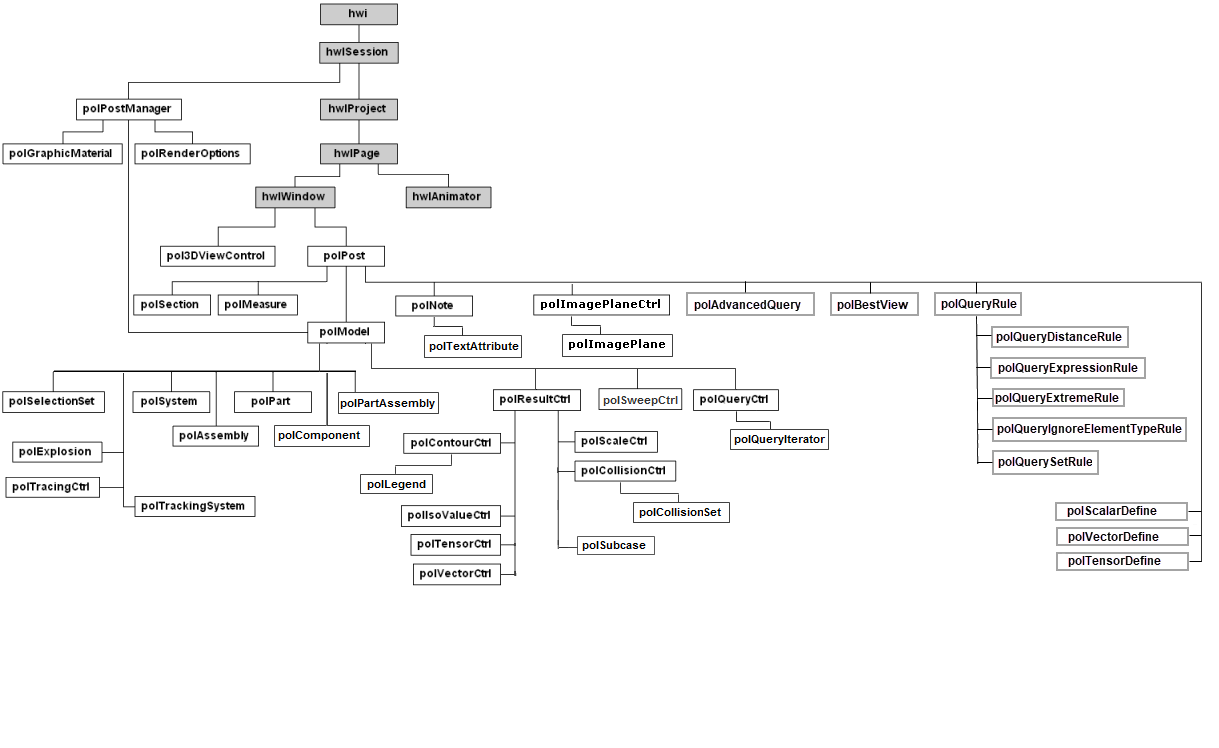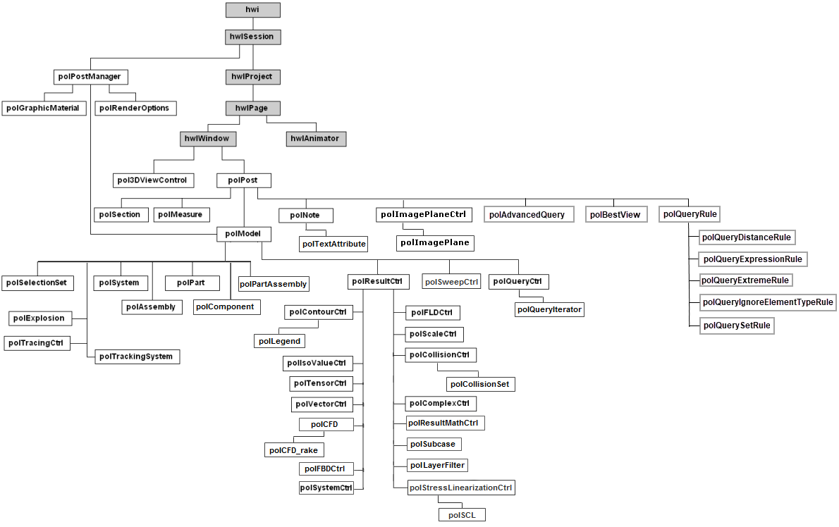 Overview of object hierarchy for HyperView, HyperGraph, HyperWorks Desktop, MotionView, MediaView and TextView.