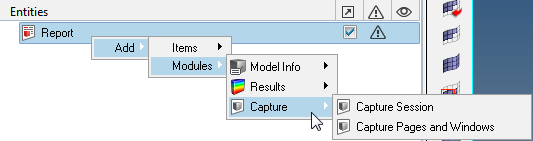 Right-click at the Report or Chapter level and select Report/Chapter > Add > Modules > Capture.