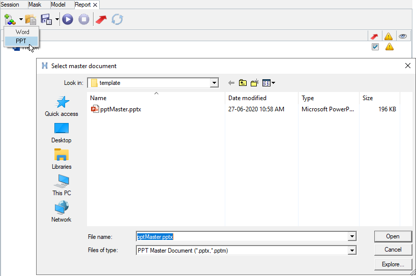 - Select a Presentation Master file using New > PPT.