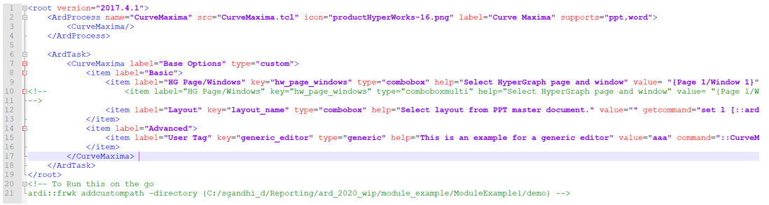 After finishing these steps, please place the XML and Tcl file in the appropriate location, preferably in the same folder. It's recommended to test this module in a HyperWorks session. For this, the module needs to be registered. This can be done in one of the following ways:
