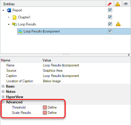When an image entity is added under a Loop Results module, additional results processing properties are activated. They are listed below.