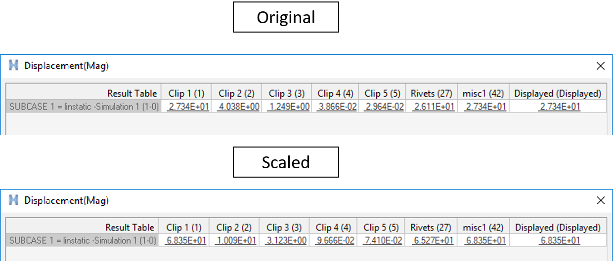 Once executed, a result table with the scaled results with the scale factor is added to the report.