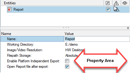 define the inputs. These properties can be accessed from the Entity Editor in the Report tab. Figure 4.