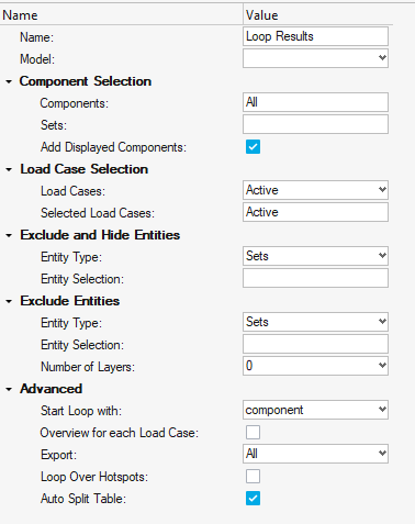 load case.Note: The columns and the rows in the Interactive Result Table that come up on loop execution would also be interchanged based on this selected option.